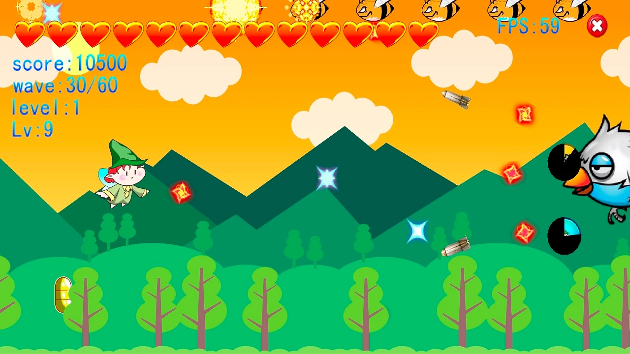 天空乐园:飞鸟,这是一款充满轻松趣味的弹幕射击闯关游戏。它以空中弹幕射击为核心进行打造,玩家在游戏中操控小精灵,肩负起消灭入侵者、拯救家园的重任。此游戏操作简单,只需轻松触屏,就能实现灵活移动。其爽感满满的弹幕射击玩法,搭配原汁原味的弹幕规则,十分考验玩家的反应能力。