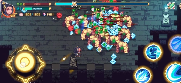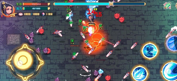 3、在场景内享受肉鸽割草的战斗,搭配技能来应对不断来袭的敌人。