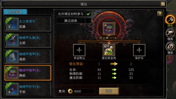 合理分配资源:优先强化武器和核心防具,避免材料浪费。