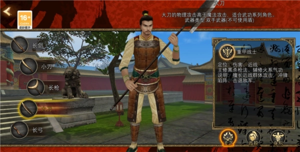 专精于强悍的物理输出,偏向武功路线,配备双手重型兵器,无法搭配盾牌。适合选择重甲战士体系,战场定位为近距离高强度输出。主攻黑杀枪法,辅以火属性气功,擅长冲破敌阵,强势压制群体目标,具备正面突破与敌军击溃能力。