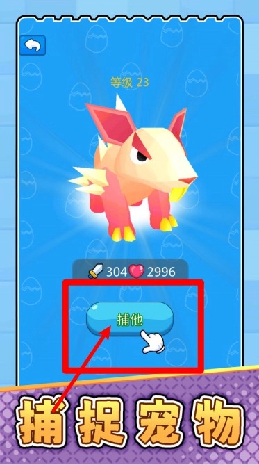 3. 点击捕捉按钮:当面对野生宠物时,点击“捕他”按钮便能够尝试收服。不过,若想要收集稀有且强大的宠物,需依据战力对成功率进行判断之后再行动。